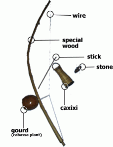 Every part of the Berimbau has its unique role in the music and the rythm it produces. Below ,you will see the Berimbau composites explained in details.