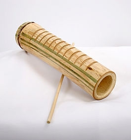 The reco-reco is an Afro-Brazilian percussion instrument. Traditionally, it is made out of bamboo or wood. The body has a cylindrical shape and several notches are engraved on one side to create a playing surface. It is then played by rubbing a wooden stick over the notched side.