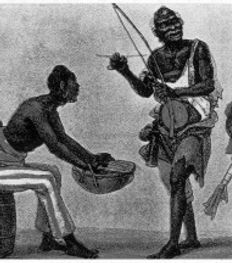 נגן רחוב עיוור מנגן בבירימבאו (Debret, 1834)